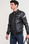 Oplev Sheep Crown Black Jean Jacket til mænd, en klassisk motorcykelmodel med licens fra Alpine, designet i glat sort fåreskind med en normal pasform.