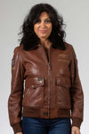 MOLLY TORTOISE damejakken fra mærket Classic Legend Motors er en bomberjakke lavet af skildpaddebrunt fåreskindslæder. Det er en jakke, der passer til alle årstider. Den har et almindeligt eller lige snit, der passer til alle kropstyper.