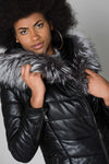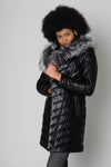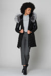 Ægte lammeskind, med fast hætte prydet med prægtig sølvrævepels. aftagelig med lynlås.