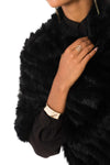 Denne vinter skal du pakke dig ind i blødhed takket være denne Denne poncho i flettede kaninstrimler fra Oakwood.
