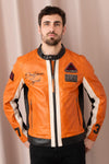 Orange racing biker collar leather jacket - Image n°1