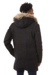 Fast hætte med vaskebjørnpels aftagelig med trykknapper.