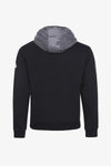 Vi finder en hybrid hætte, der integrerer kravens funktion og er udstyret med ;et strammeled. Tøjet jonglerer konstant mellem sort og gråt. Sølvmetallukningen er omgivet af en dekorativ kant. sort over hele sin længde, der matcher det sorte på de lange ærmer og kontrasterer med det grå i den centrale del. De 2 brystlommer er fastgjort. Snap flapper og har sorte kanter på en grå baggrund. Den stiliserede H fra Horspist er til stede på venstre arm, mens den højre side er markeret med tilstedeværelsen af et logomærke. Manchetterne er i taljen. stræk ribkant.