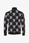 Vi finder et højkvalitets åndbart teknisk stretchstof. hvis hele overfladen er printet med hvide Jason-masker på sort baggrund. Vi genkender der; inspiration hentet fra mærkets ikoniske t-shirt. Kraven er rund og afslører en tofarvet snøre, der krydser 2 guldøjer. Livmoderhalsen er dannet ribbede kanter. Det samme gælder manchetterne på de lange ærmer og taljen. Det metalliske våbenskjold logotype Horspist er tacklet i brysthøjde, side af brystet til VENSTRE. To sidelommer er synlige i bunden af tøjet.