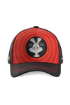 Disse baseballkasketter kombinerer sorte og røde farver og fremhæver Bugs Bunny-kaninen repræsenteret af på kronen takket være et sort flocket badge; på rød baggrund med runde mønstre. Det afrundede visir er udsmykket af røde syninger, som giver en karakteristisk tone. forenet med denne kasket. To mærker er placeret på hver side af skoen. af mesh-hætten.