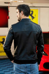 Black leather jacket with biker collar 24h Le Mans - Image n°1