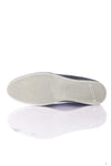Udvendigt i marineblåt fløjls-look gedeskind.