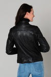 Læder er praktisk og trendy. Beviset med denne ELECTRA NOIR 501 damejakke lavet i Italien. à fåreskindslæderbase af mærket Oakwood.