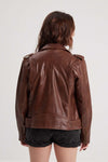 Fortæl din stil med Daytona "OTILIA SHEEP AOSTA BISON" Perfecto-jakken. Denne ikoniske damemodel, lavet af bisonfarvet lammeskind, kombinerer perfekt vintage elegance og robusthed. Den er designet til at blive båret på alle årstider, takket være dens regelmæssige snit, som tilpasser sig alle kropsformer.