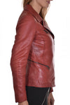 Fårskindslæder og polyesterfor, denne perfecto vil give dit outfit et originalt præg. dine outfits med sin storslåede røde farve.