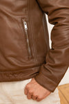 Brown leather shirt collar jacket - Image n°3