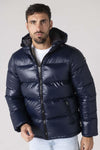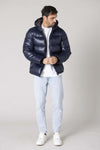 Men's navy blue nylon down jacket - Image n°1