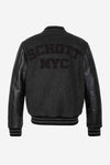 LC8705 GRÅ/SORT herrejakke fra Schott-mærket er en bamse lavet af sort okselæder. Det er en jakke, der passer til alle årstider. Den har et almindeligt eller lige snit, der passer til alle kropstyper.