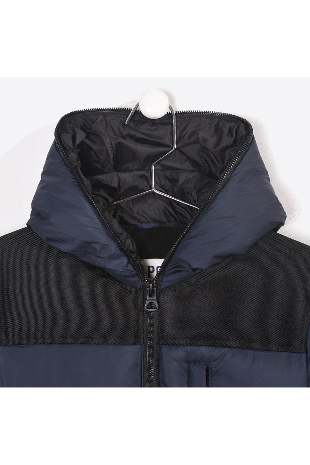 MARCO NAVY er en tekstiljakke til børn fra mærket Kaporal. Vatmodel med quiltet effekt til en varm vinter. Mærkepåskrift på bagsiden. Komposition: 100 % polyester. Fast hætte. Ribkant ved manchetterne....