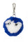Oakwood tilbyder en nøglering i tofarvet blå og hvid kaninpels dekoreret med 2 sorte rhinsten, der ligner; små øjne.