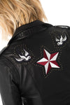 Med sine gamle skolelapper omgivet af små nitter, er PARADISE LAMB MISSOURI BLACK utvivlsomt en jakke med et rock-look.
