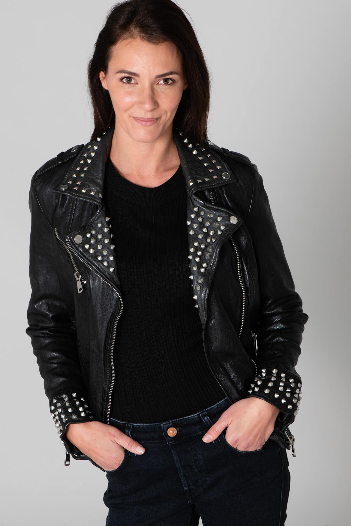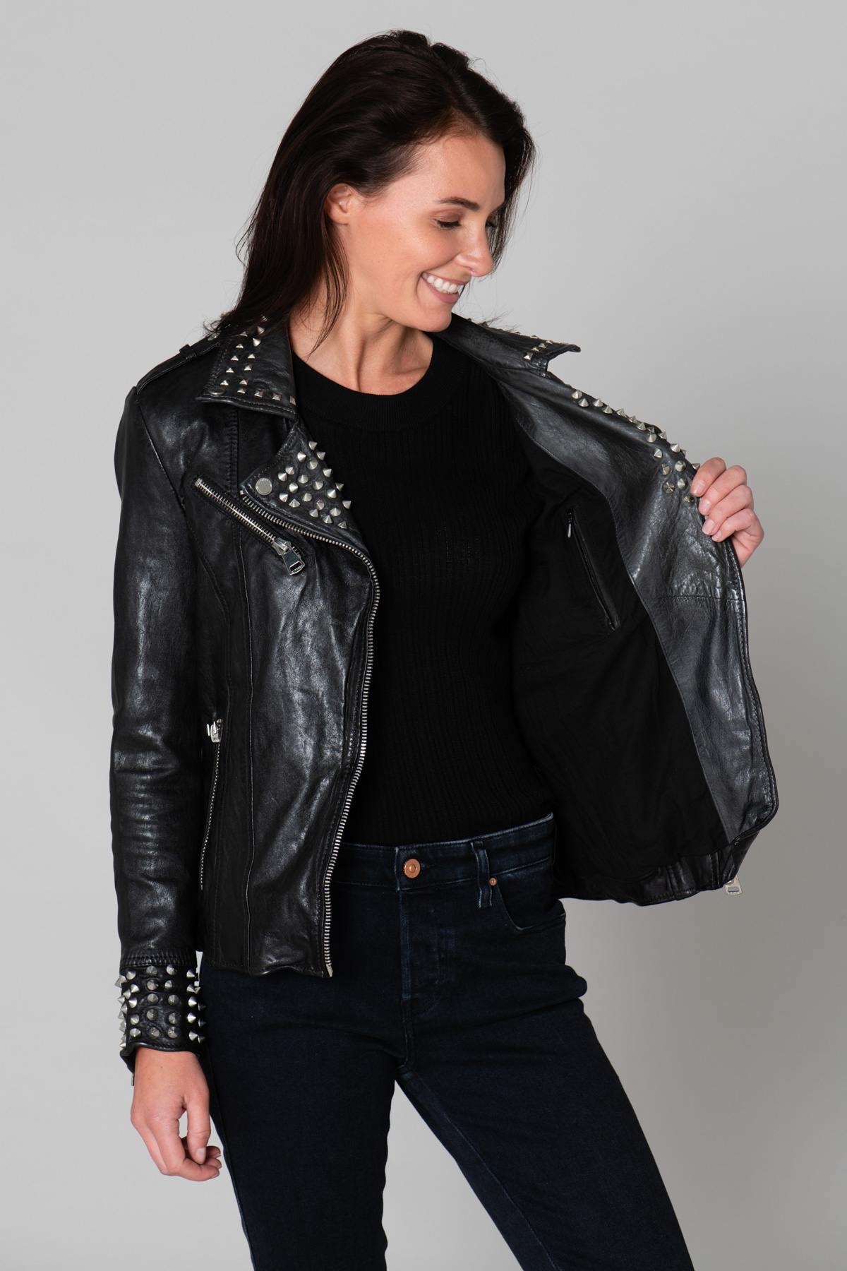 CITYZEN-mærket vender tilbage til perfecto i en meget rock'n roll-stil og præsenterer sin TENNESSEE BLACK GREY ZZ damejakke. En flot præstation lavet i fåreskind og skåret i et slankt snit.Sort...
