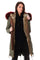 Hætte med indvendig kaninpels, aftagelig ved lukning Lynlås dekoreret med rævepels, som også kan tages af ved lukning.