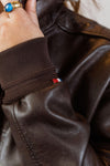 Brown leather bomber jacket with white removable fur collar - Image n°4