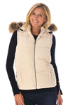 Aftagelig hætte og vaskebjørnpels med lynlås.