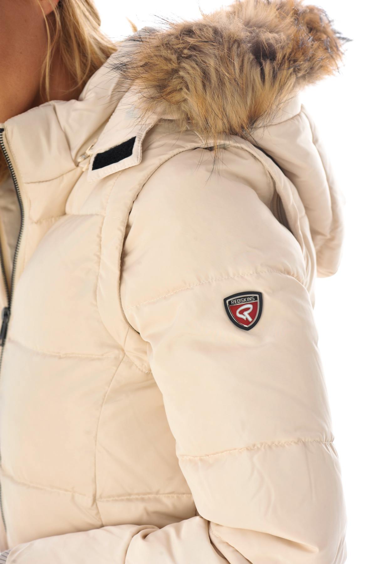 Women's ivory white down jacket with fur collar - Image n°4