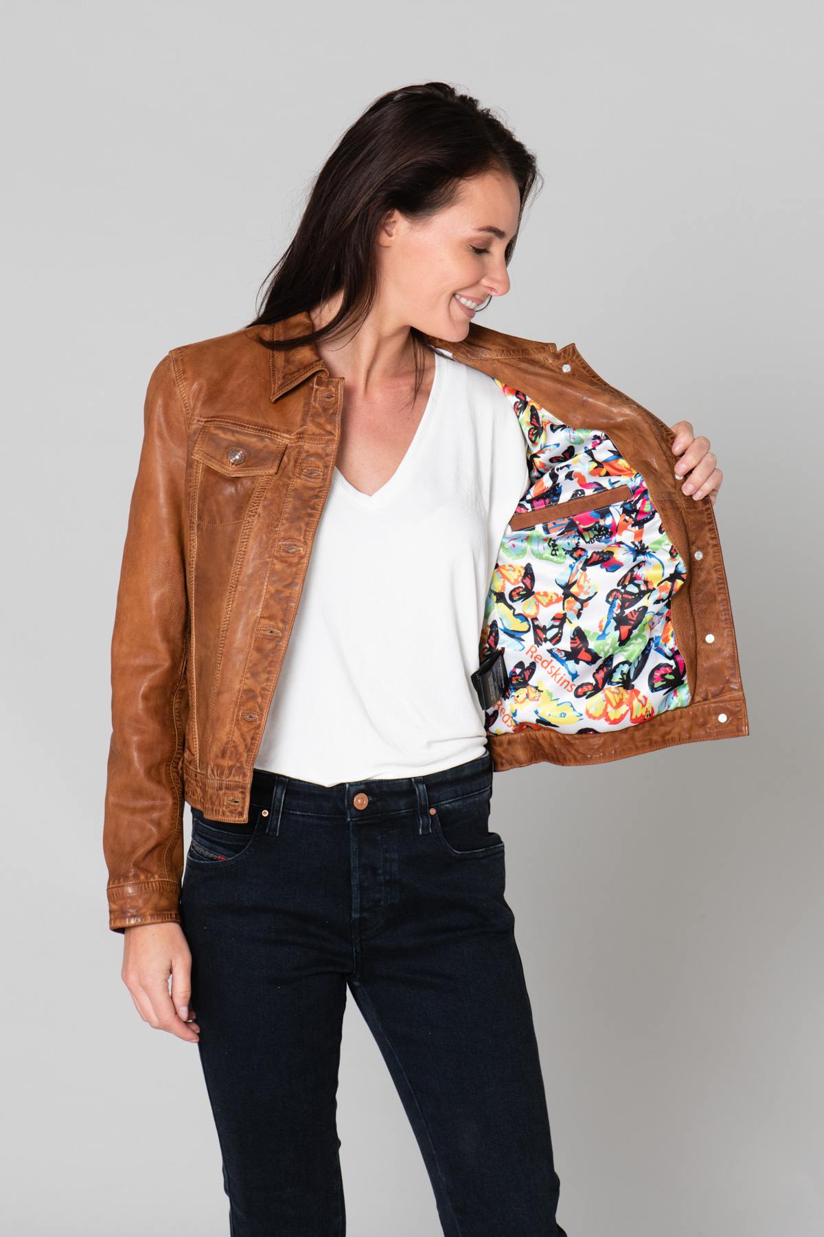 It is a close-fitting cut. The product will be fitted at the waist and the sleeves will be quite tight.<br><br> This type of jacket will be worn more easily open due to its fitted appearance.<br><br> The Slimfit cut is the most widespread among leather clothing, it is the fashionable cut!