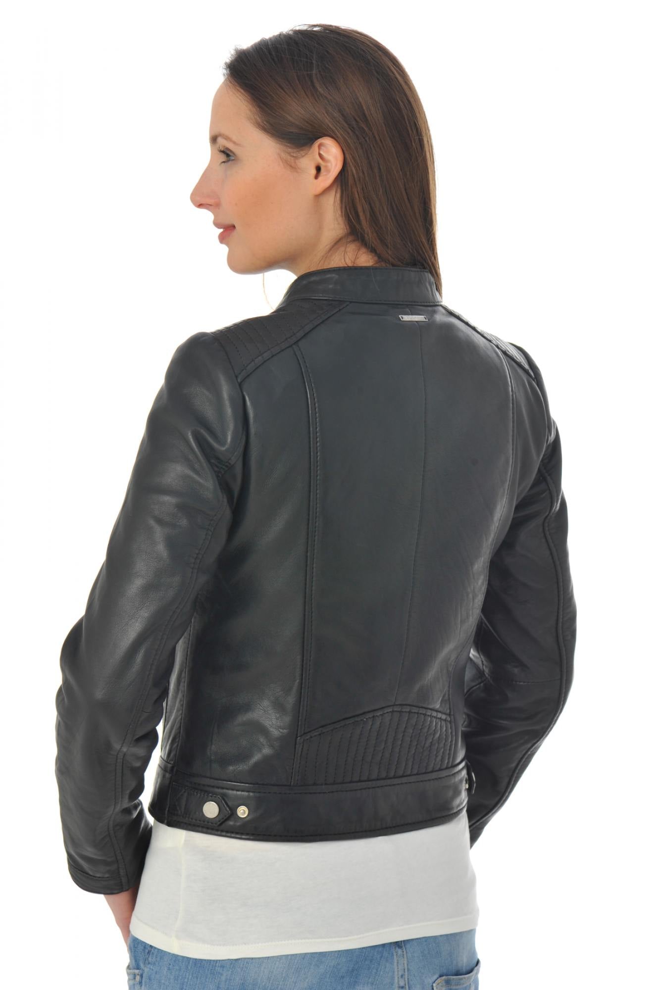 Women's biker-style leather jacket - Image n°8