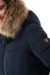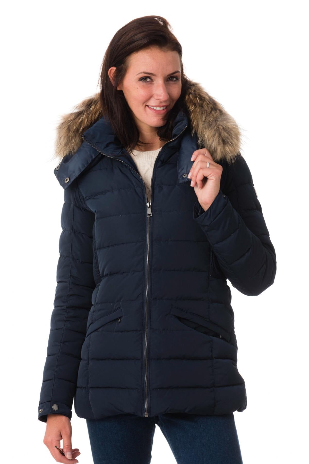 Denne marineblå dunjakke vil være perfekt med en lille rullekravetrøje, jeans og læderstøvler sorte for et helt sæsonbestemt look .