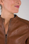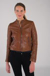 Chic og ren, denne cognacfarvede Siara Earley-jakke fra Redskins er en bikerjakke lavet af smidigt og let fåreskind.