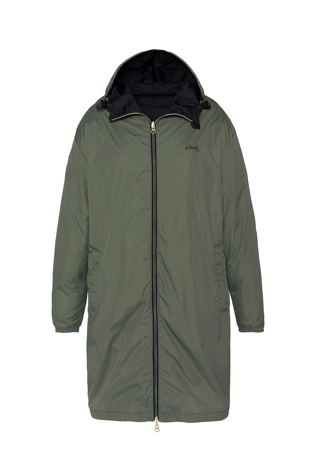 Long reversible black and sage khaki jacket - Image n°1