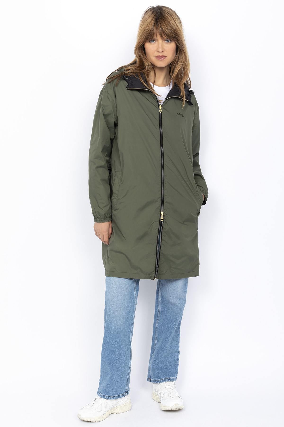 Long reversible black and sage khaki jacket - Image n°11