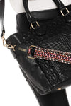 Den leveres med lynlås. med 2 skulderstropper: en i læder og en i etnisk farvet stof, som giver dig mulighed for at ændre din stil efter dine ønsker.