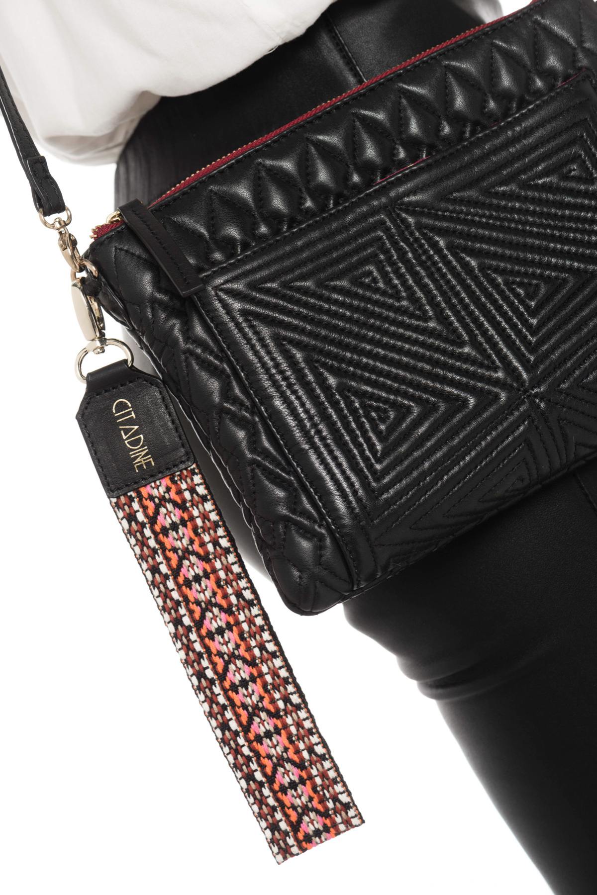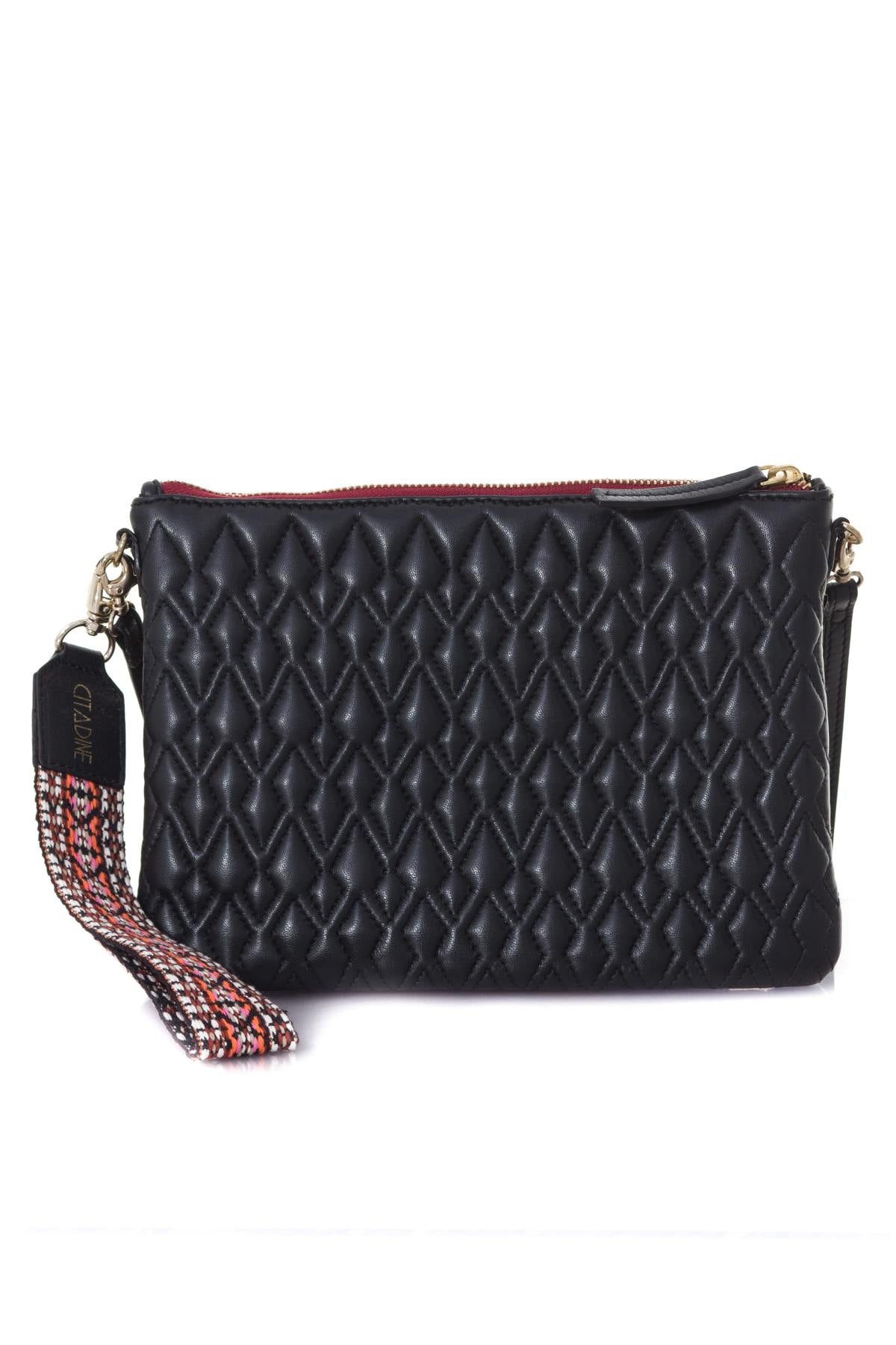 Fald for denne storslåede clutch fra Citadine. Det franske mærke tilbyder en model i fåreskind med en quiltet effekt. original og meget feminin. Indvendigt rum med en lynlåslomme og en...