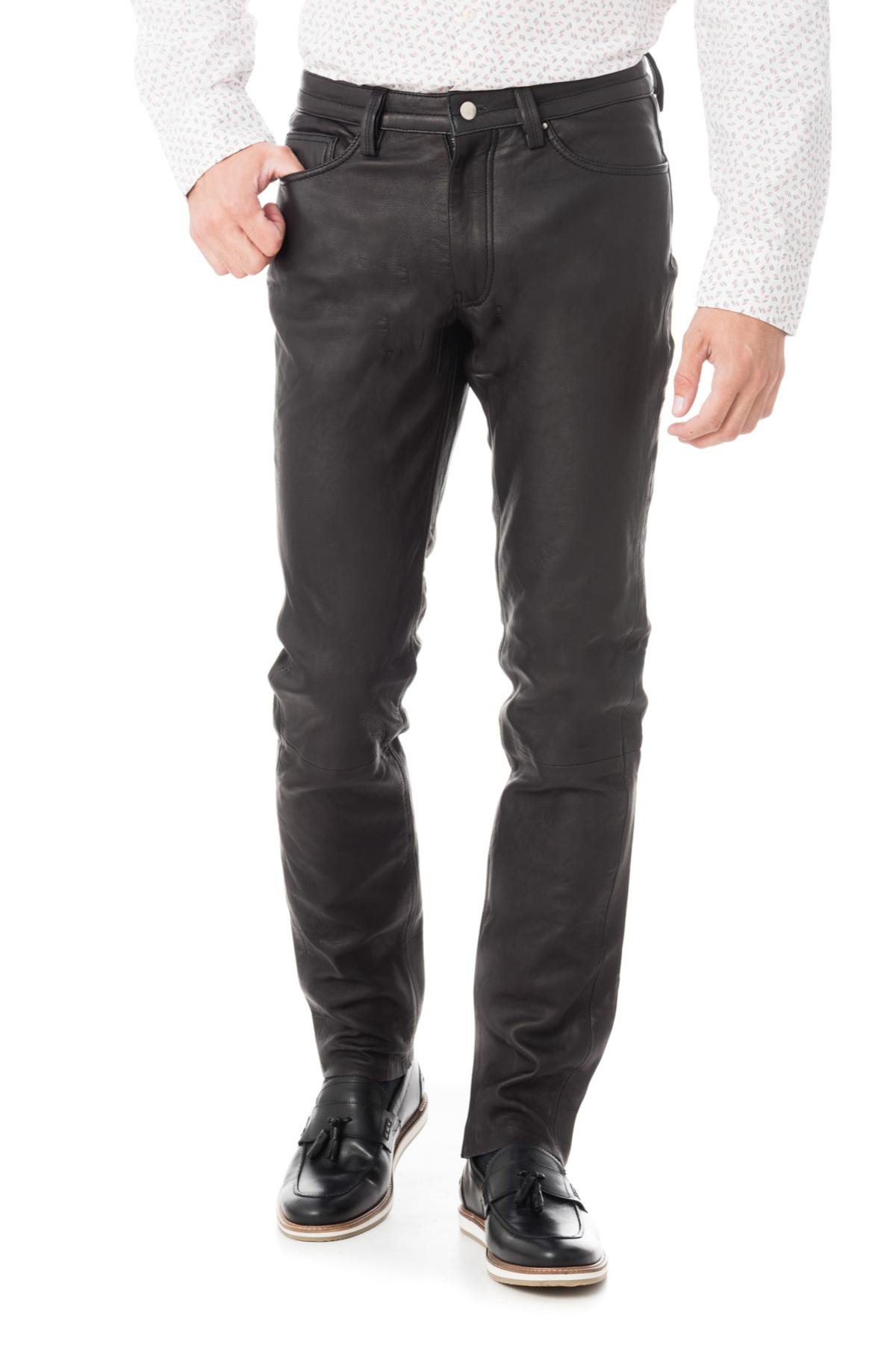 Men's black leather pants - Image n°1