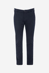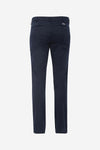 Dens syninger og marineblå farve gør det til et par smukke bukser, der er ideelle til både et formelt look og en casual chic stil. Noget til at klæde dig på under alle omstændigheder. Disse bukser lukkes med en knap og en skjult metallynlås. Løkker er syet i taljen og giver dig mulighed for at indsætte et bælte, hvis det er nødvendigt. To lommer er syet bagpå. foran og to andre knappede raglans er fastgjort bagpå. bagenden. Et mærke er syet over højre baglomme.