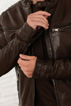 Denne læderjakke har et Skinny-snit. Den bæres meget tæt på kroppen, både på torsoen og på ærmerne. For at bevare denne slanke effekt skal du vælge din standardstørrelse! Hvis du foretrækker løsere styles eller planlægger at bære tykt tøj under, kan du gøre netop det. Hvis du vælger en størrelse større end din sædvanlige størrelse.