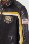 Opdag PHILADELPHIA LAMB VITA BLACK / YELLOW jakke til mænd fra Daytona, en bikermodel i glat lammeskind med en karakteristisk stil. Denne jakke kombinerer et sporty og vovet look takket være dens gule og hvide striber og varierede patches.