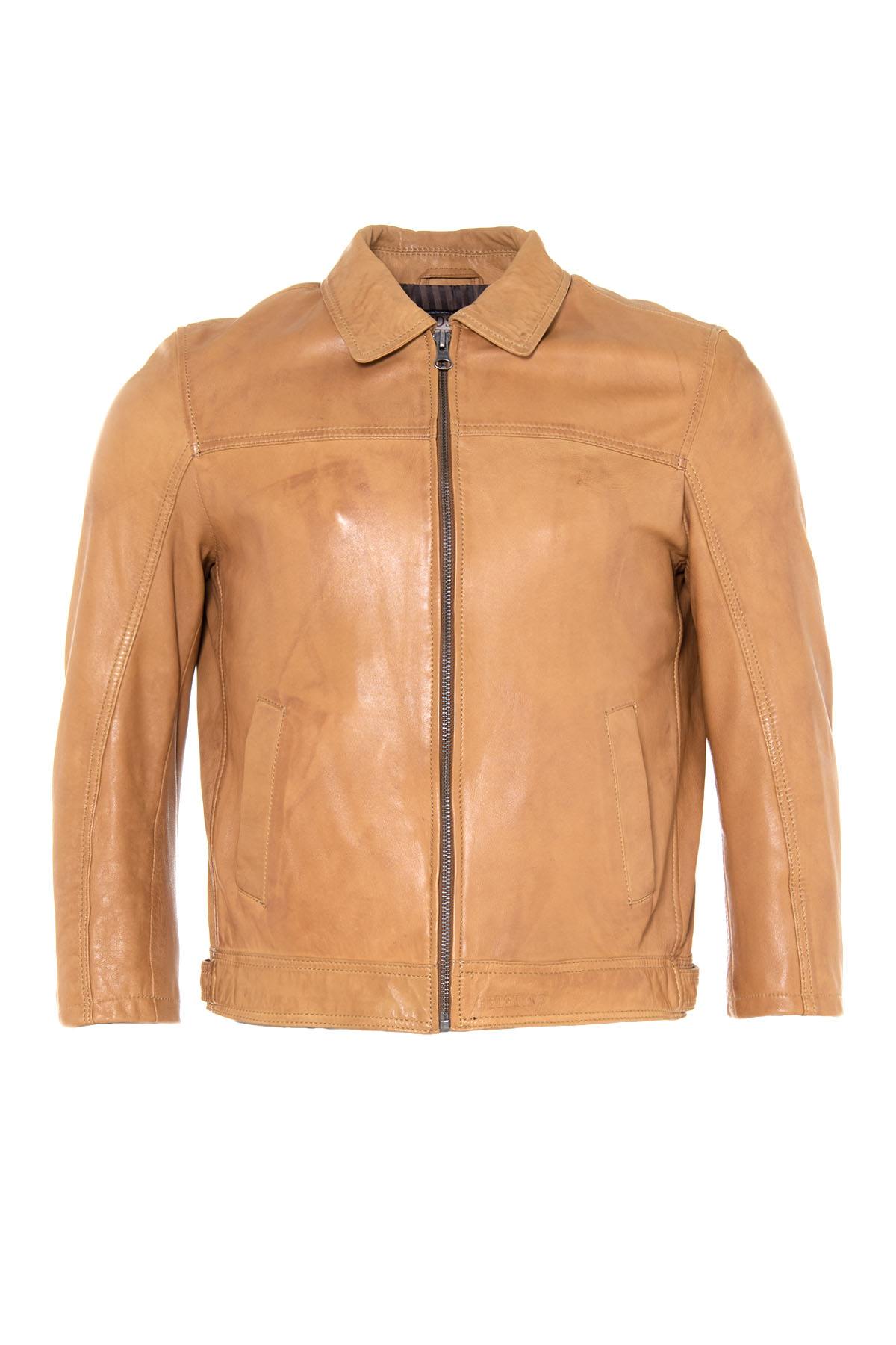 Cognac leather jacket for Men - Image n°1