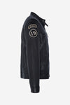 Denne jakke lukkes i aksen med en lang metallynlås, som giver anledning til en lynlås. en bikerkrave med fra strop til trykknap. To vandrette lynlåslommer er syet på hver side af tasken. af brystet, mens to andre lodrette lommer er placeret på hver side. Enderne af de lange ærmer kan lukkes med to trykknapper.