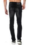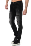Disse sorte jeans fra Redskins har et falmet udseende; og revet meget moderigtigt.
