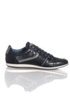 Marineblå farve med grå detaljer, som giver en flot kontrast.