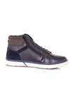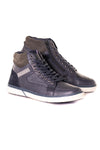 Disse high-top sneakers har en læderoverdel samt indersål, mens foret er af tekstil. Det perfekte farveskema giver et strejf af friskhed til dit værelse. disse sko. Metaløjer gør det nemmere at passere de marineblå snørebånd, og en metalbelagt lynlås gør det nemmere at passere gennem de marineblå snørebånd. på den indvendige side giver dig mulighed for at justere godt efter din fods morfologi. Mærkenavnet er trykt på etiketten. på ydersiden, i niveau med det tynde grå bånd.