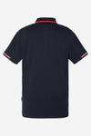 Denne marineblå poloshirt, som kommer til os fra Schott-mærket er en garanti for knowhow og kvalitet. Dens skjortekrave er illustreret med en kontrasterende rød finish. dens base. Det samme kontrasterende præg ses med det indvendige kravebånd, men også på den mellemlange lukning. to knapper. Vi bemærker også korte maskuline ærmer med ribbede ender, dekoreret med tynde røde og hvide bånd. Det uforlignelige mærke er broderet på brystet og på etiketten. indeni, under kraven.