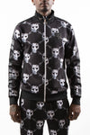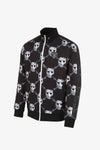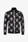 Vi finder et højkvalitets åndbart teknisk stretchstof. hvis hele overfladen er printet med hvide Jason-masker på sort baggrund. Vi genkender der; inspiration hentet fra mærkets ikoniske t-shirt. Kraven er rund og afslører en tofarvet snøre, der krydser 2 guldøjer. Livmoderhalsen er dannet ribbede kanter. Det samme gælder manchetterne på de lange ærmer og taljen. Det metalliske våbenskjold logotype Horspist er tacklet i brysthøjde, side af brystet til VENSTRE. To sidelommer er synlige i bunden af tøjet.