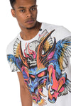 JECKYLL M520 WHITE t-shirt med sit storslåede print. farverig drage udsmykket af rhinsten.