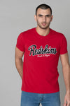 Med rund hals og korte ærmer med perfekt strukturerede skuldre præsenterer denne t-shirt en resultat opnået takket være designet. meget gennemarbejdede sømme. Dens bomuld er en forførende rød, forstærket af et imponerende flocket vintage-logo. på fronten i baseball-stil.