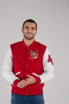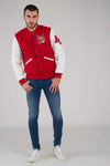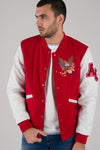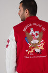 Denne bamse er udstyret med en ribbet krave samt dens base. Kan lukkes med en skjult aksial metallynlås. med trykknapper har den to hvide raglanlommer, som står i kontrast til den anden. vidunderligt med hoveddelens røde farve. Side venstre bryst er flocked; et broderet logo fra en ørn til hvidt hoved ledsaget af USA's flag. De lange hvide ærmer er afsluttet med røde ribkanter, der matcher AC-logoet med kanter. på venstre skulder. På ryggen er den samme ørn flokket. i stort format for at markere originaliteten af mærket. Dunjakkens interiør og de flot fremhævede sømme passer godt til ethvert outfit. denne jakke som kom ud af det amerikanske studenterunivers for at passe let ind i ethvert outfit. socialt liv.
