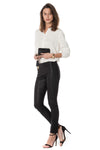 Cowskin læder og sort polyester foring hvide polkaprikker, den er meget praktisk med sine 3 rum, sin lynlåslomme og sine 4 kortpladser.