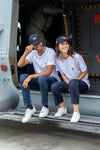Initially designed as ornaments, cockades quickly evolved to become symbols of belonging to organizations. The Flottille T-shirt highlights the Marine cockade, proudly positioned on the heart, inviting you to embark on the world of naval aviation flotillas.