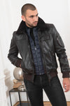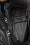Sheep fur collar removable with buttons which once removed reveals a leather shirt collar.